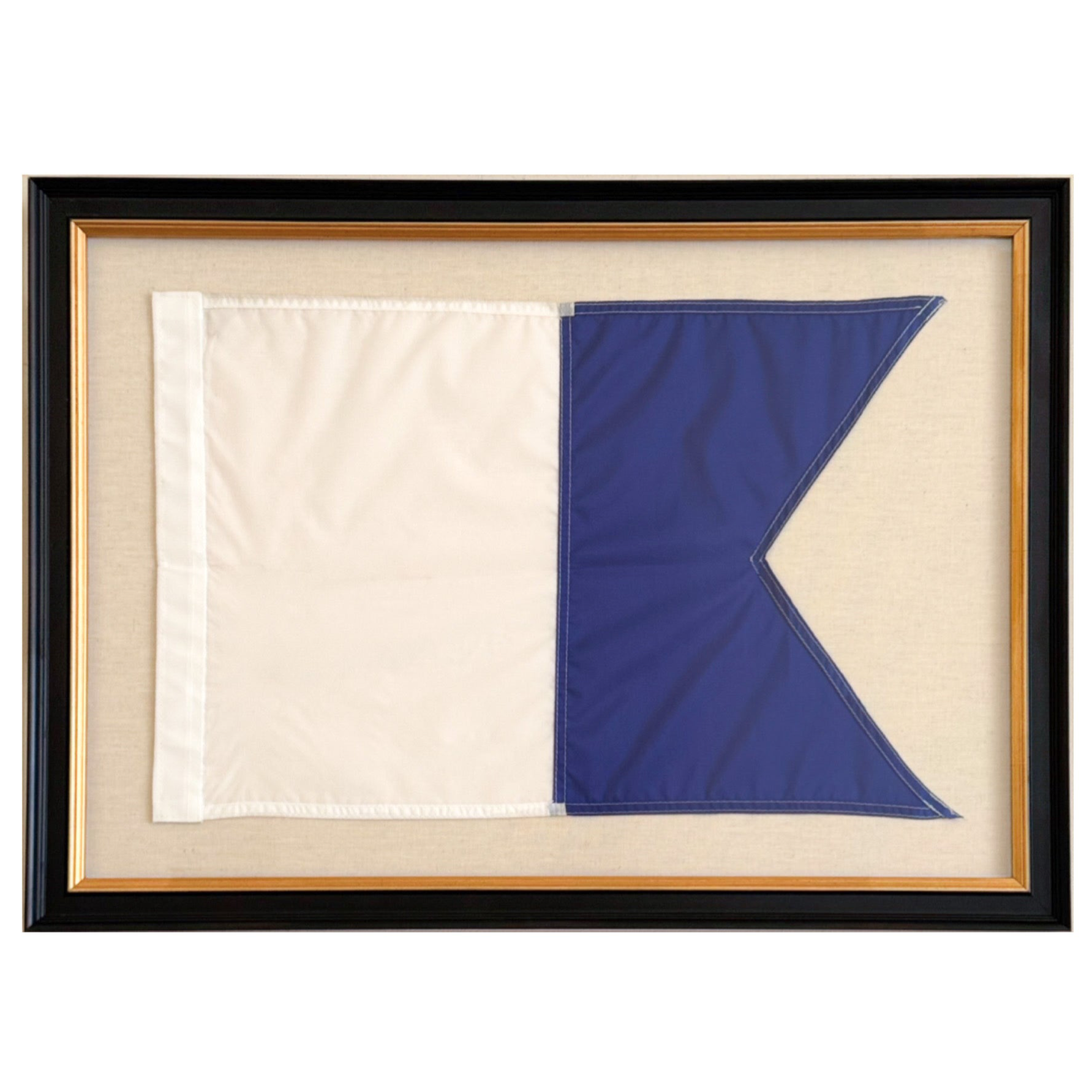 Letter A, also known as "alpha." This flag dates to the 1970s and is in excellent vintage condition. Framed under UV protective glass with acid-free natural linen matting. Measures 17 x 23 inches including the frame.