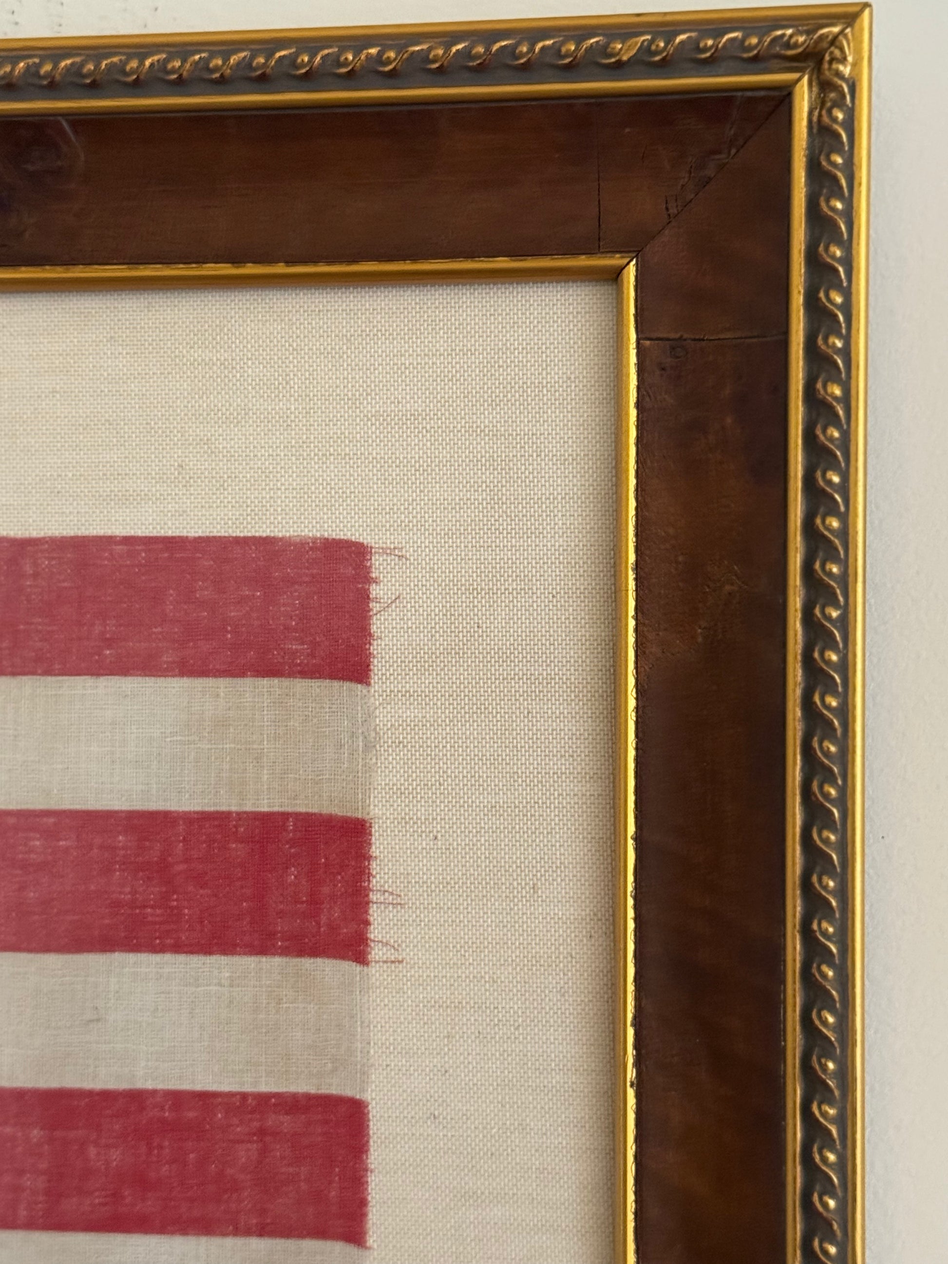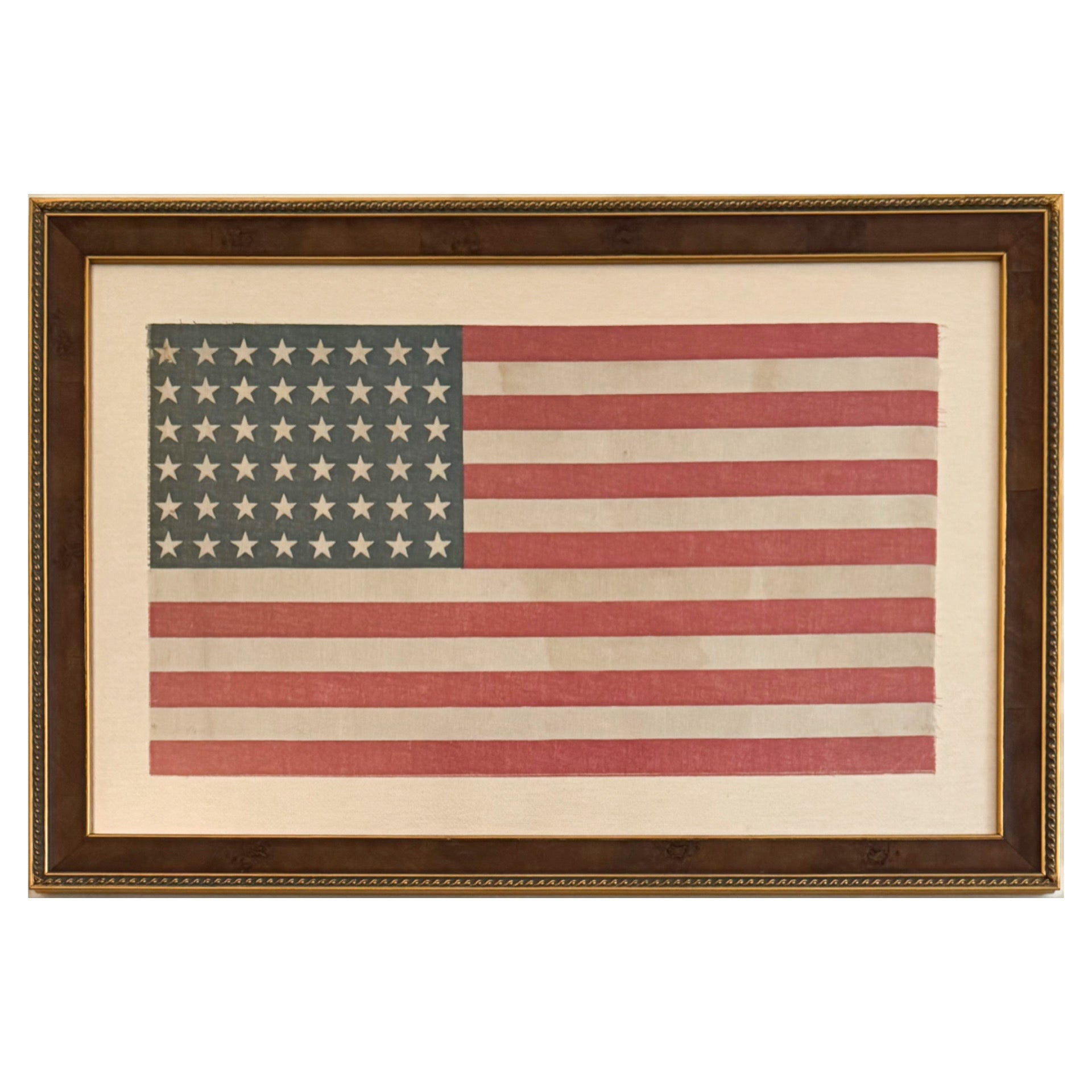 A large antique 48-star American flag from the 1930s. Made of linen, with light patina. Preserved under UV protective, reduced-glare glass and acid-free linen matting. Measures 20 x 30 inches including the frame.